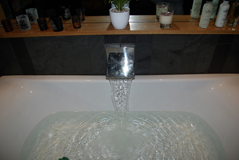 The make up of the floor allowed for the installation of underfloor heating, while the bath is semi sunken the remainder of the room acts as a wet room as there is a bespoke floor drain installed.